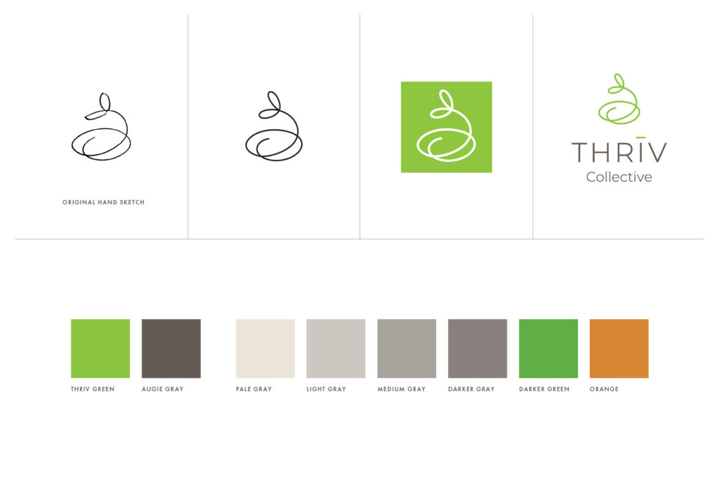 Transitioning our hand-sketched concept into Adobe Illustrator allowed us to meticulously sculpt each curve and adjust line thickness. This digital fine-tuning transformed our initial spark of inspiration into a polished, purposeful visual identity that truly represents the Thrīv Collective brand.