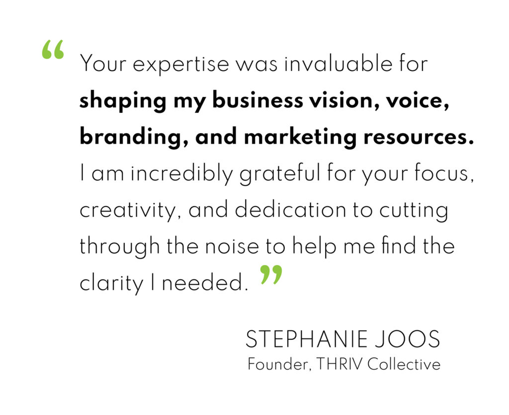 Thrīv Collective serves adults struggling with anxiety, depression, ADHD, complex trauma, and emotional challenges like feeling worthless and disconnected. The website includes the kind of “self-talk” that speaks directly to a potential client’s internal experiences, reinforcing that Stephanie genuinely understands and meets her clients where they are.